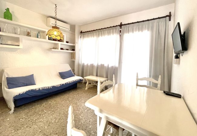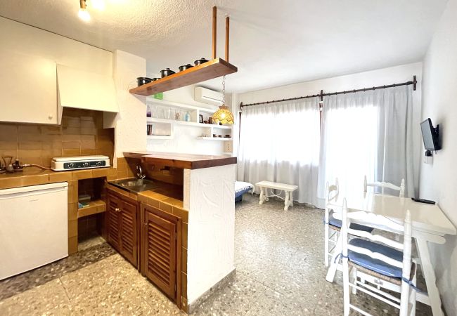 Apartamento situado en primera planta en el mismo edificio donde se encuentra nuestra oficina en el centro de Es Pujols, en frente del supermercado La Alhacena y a unos 150 metros de la playa. Se compone de un dormitorio doble con dos camas individuales (90x190) y ventilador de techo, salón-comedor con sofá-cama y aire acondicionado, cocina americana, baño y balcón.