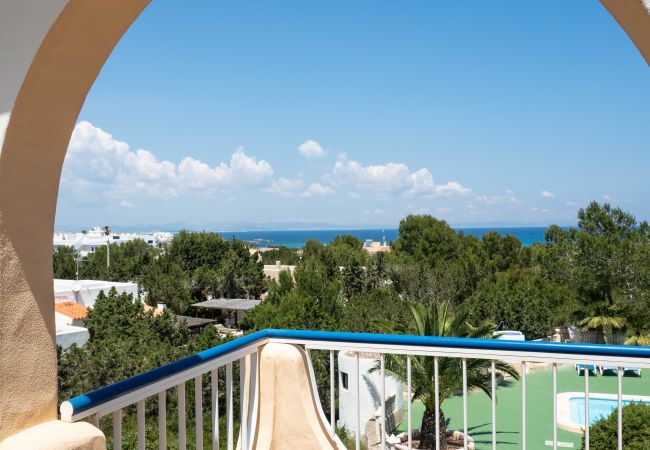 Apartamento situado en planta baja en una zona tranquila a unos 450m de Es Pujols dirección a Punta Prima y a unos 200 metros del mar.