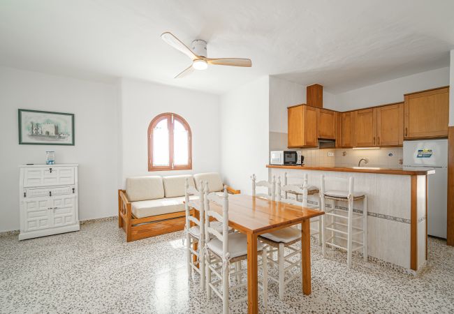 Apartamento situado en planta baja en una zona tranquila a unos 450m de Es Pujols dirección a Punta Prima y a unos 200 metros del mar.