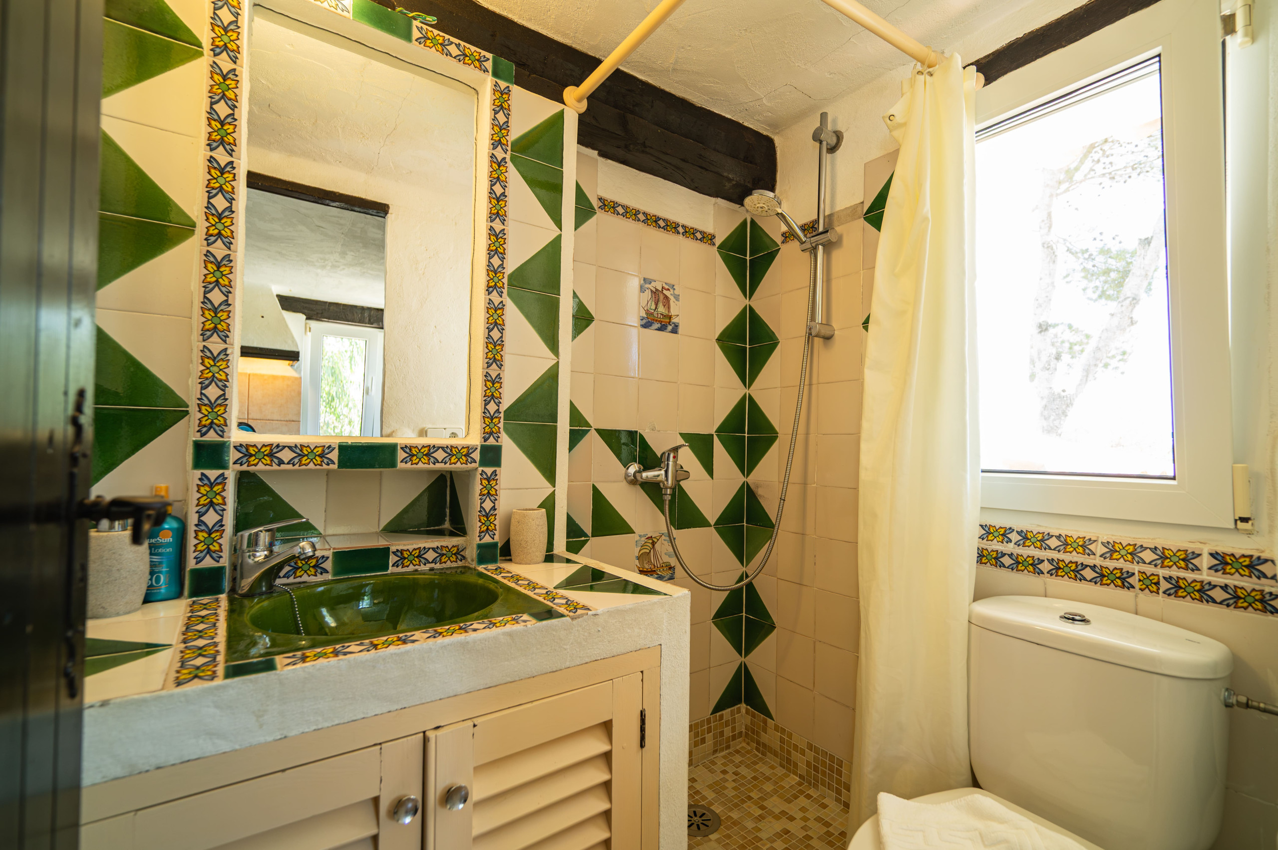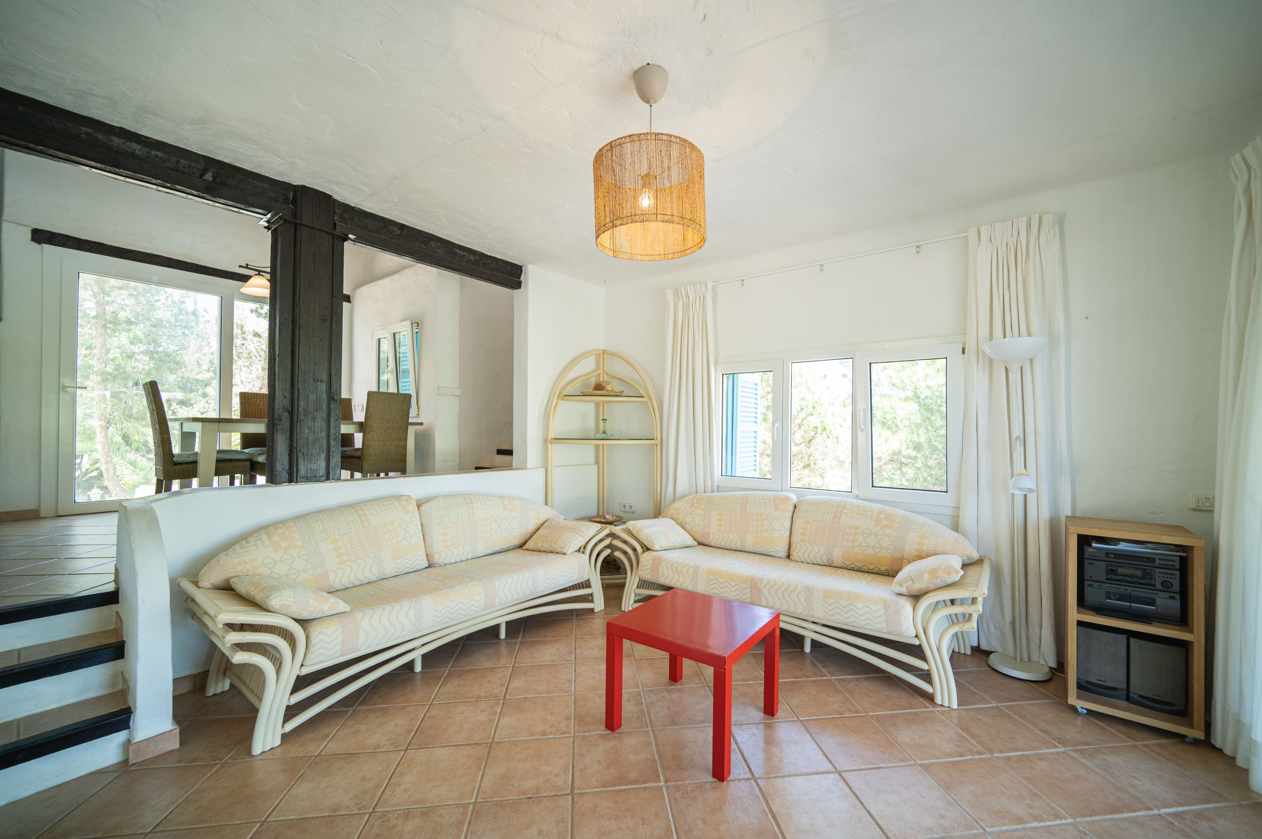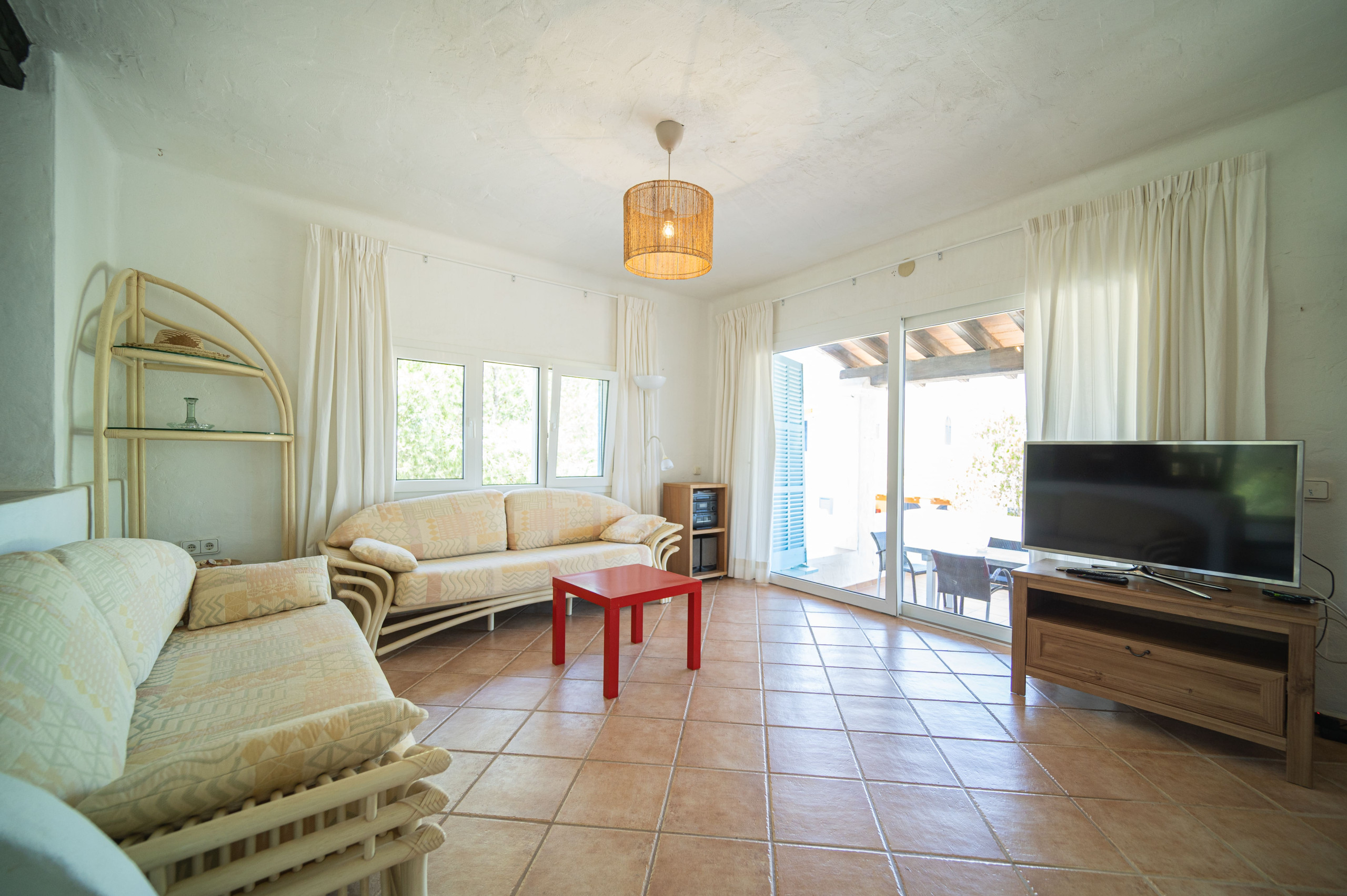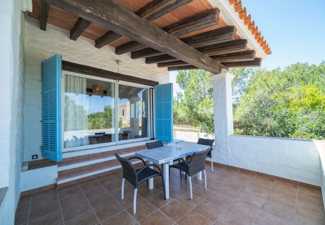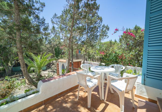 Casa turística particular y confortable situada en una zona tranquila a las afueras de Es Pujols, a unos 400 m del centro dirección Punta Prima y a 200m del mar. Se compone de dos pisos: en planta baja se encuentra la entrada con un amplio salón-comedor, cocina bien equipada, un pequeño baño/aseo con ducha y 2 terrazas espaciosas. En la primera planta con vistas al mar hay dos dormitorios dobles con aire acondicionado, uno con dos camas individuales (90 x 190) y otro con cama matrimonial (180 x 190), un baño completo y balcón.
