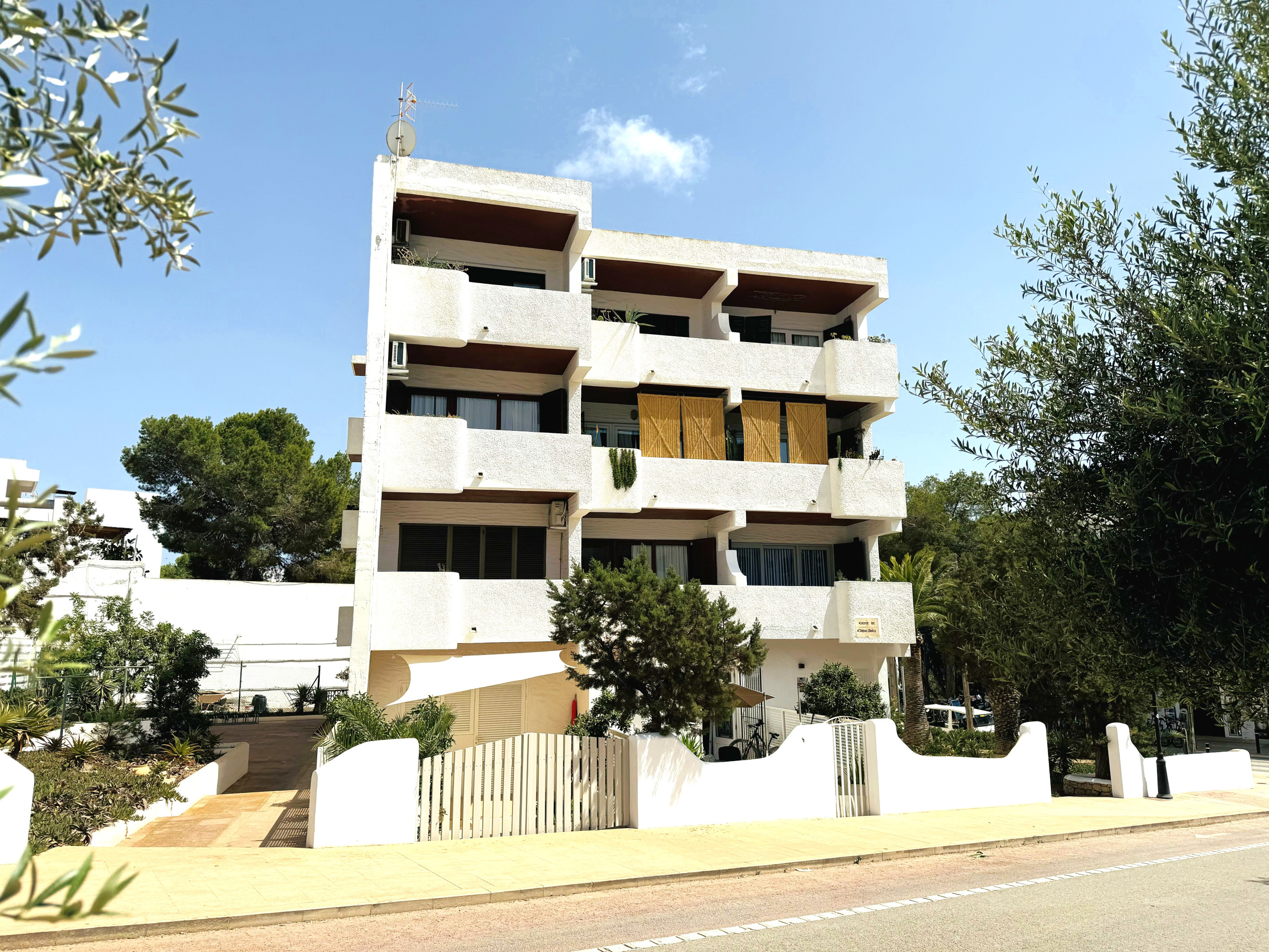 Flat in the centre of Es Pujols, 250 metres from the beach and only 4 minutes from the turquoise waters that bathe the coast of the town. It is located on the first floor of the Rex-I Building in Calle Espalmador 52, in the tourist centre of the island where you will find restaurants to enjoy Mediterranean cuisine, shops and the hippie market on the seafront.