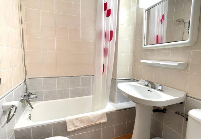 Flat situated on the first floor in the same building where our office is located in the centre of Es Pujols, in front of the supermarket La Alhacena and about 150 metres from the beach. It consists of a double bedroom with two single beds (90x190) and ceiling fan, living-dining room with sofa-bed and air conditioning, kitchenette, bathroom and balcony.