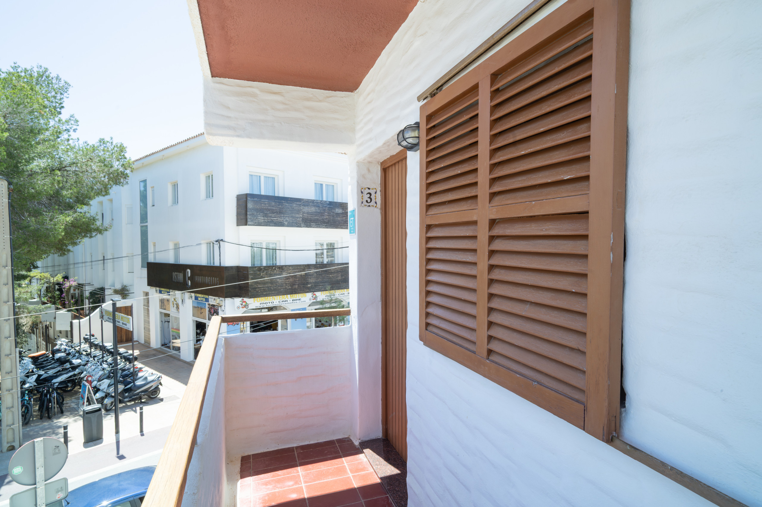 Flat situated on the first floor in the same building where our office is located in the centre of Es Pujols, in front of the supermarket La Alhacena and about 150 metres from the beach. It consists of a double bedroom with two single beds (90x190) and ceiling fan, living-dining room with sofa-bed and air conditioning, kitchenette, bathroom and balcony.