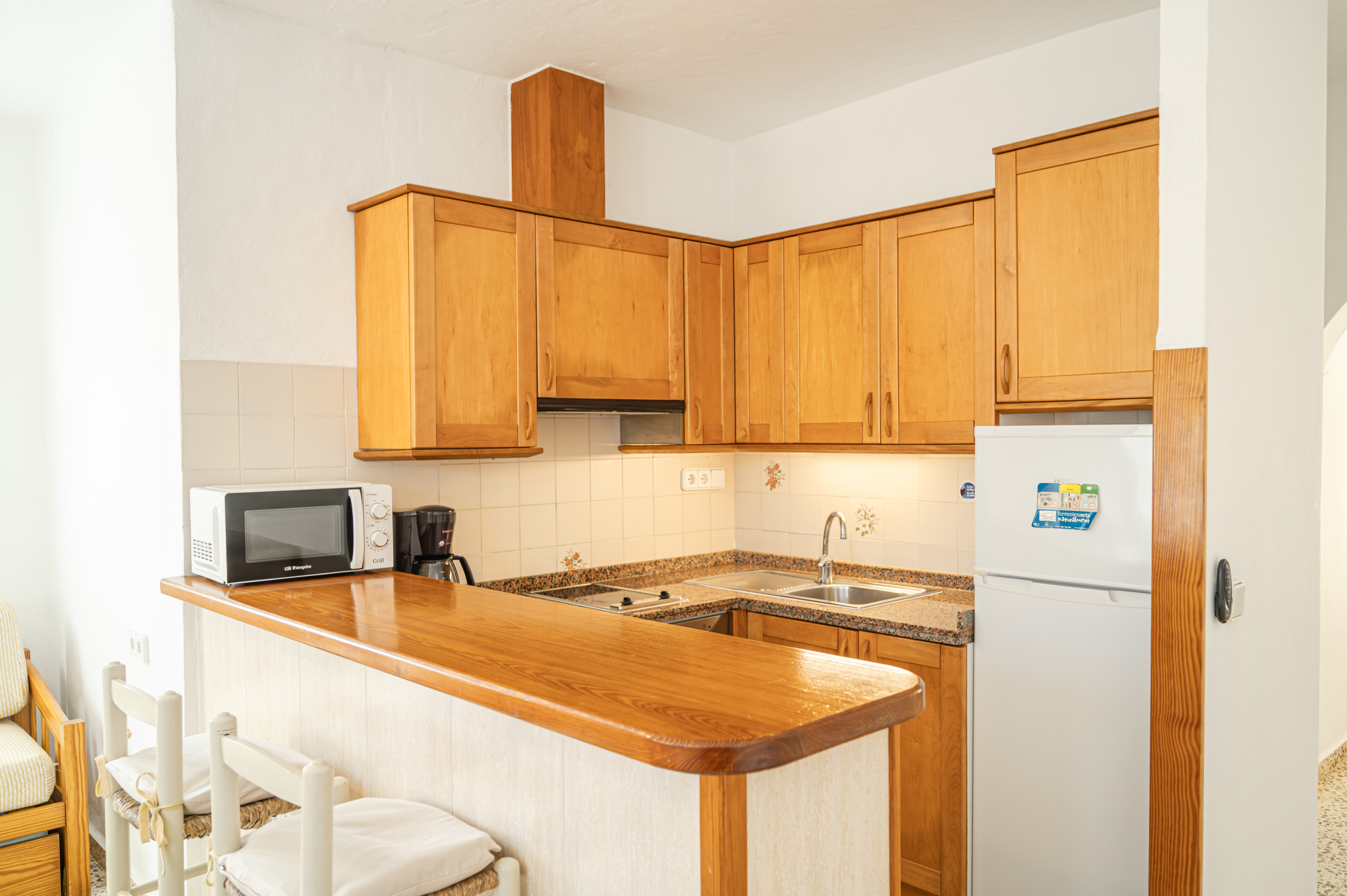 Apartment located on the ground floor in a quiet area about 450m from Es Pujols heading towards Punta Prima and about 200 metres from the sea.