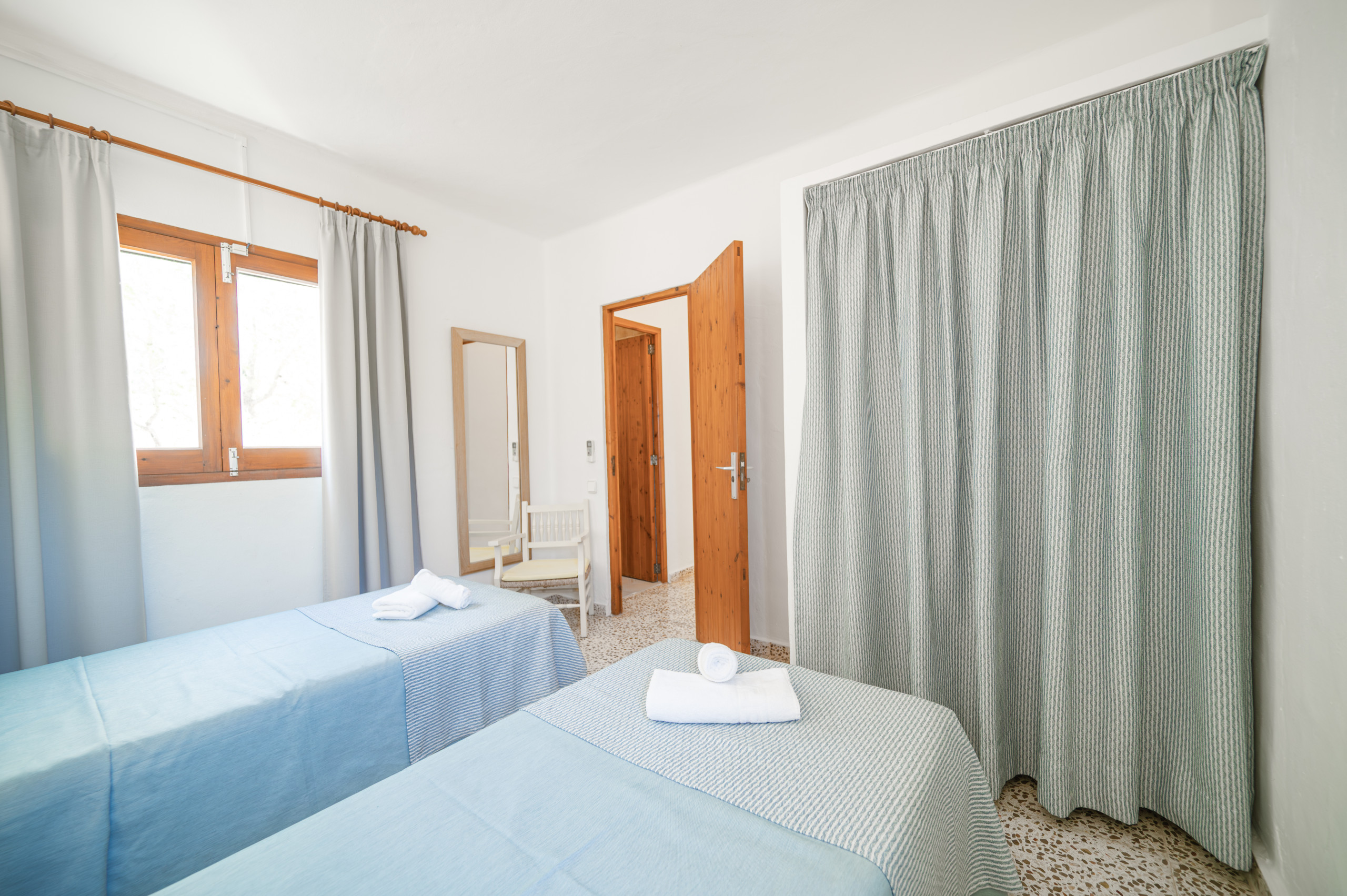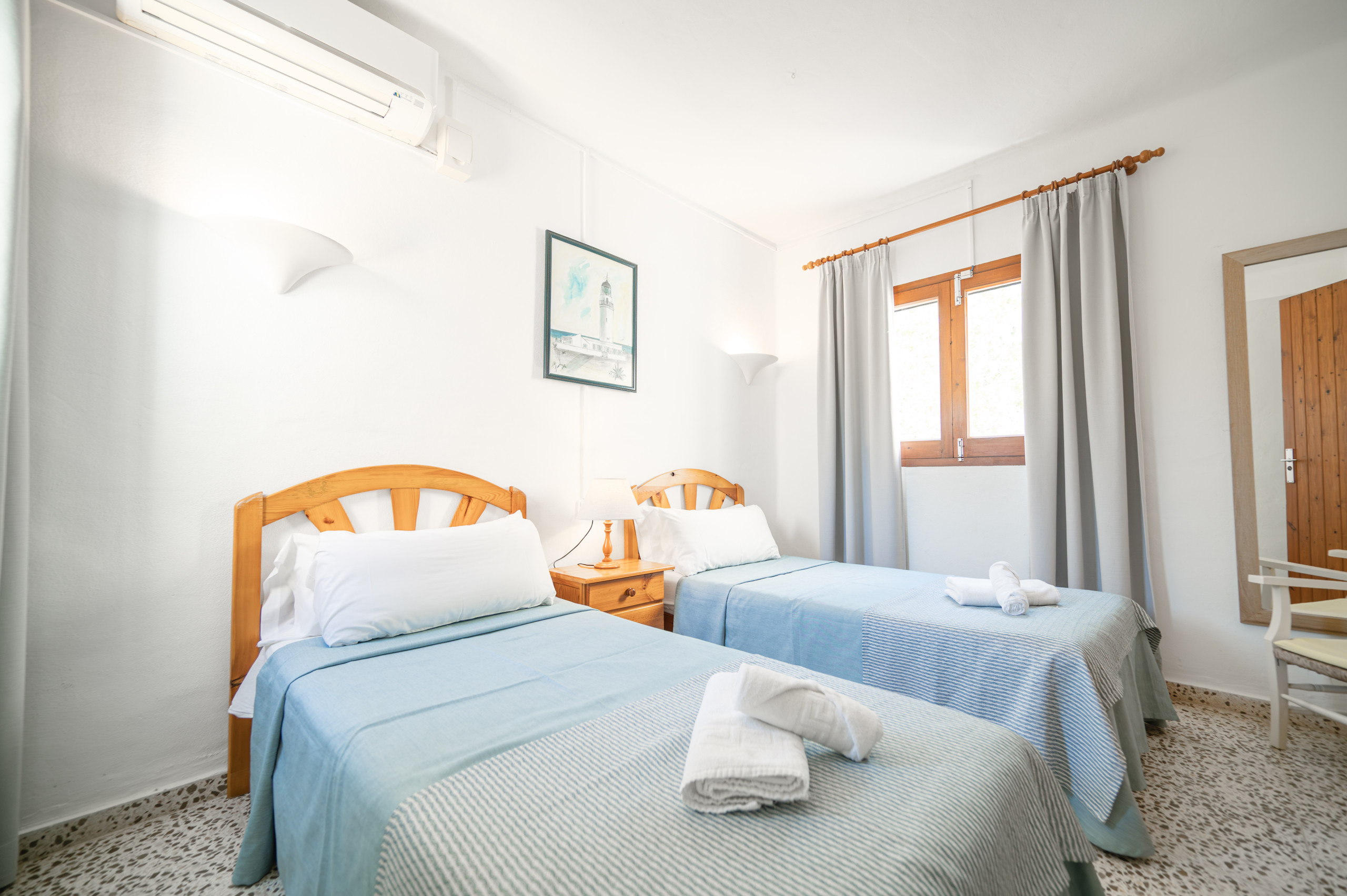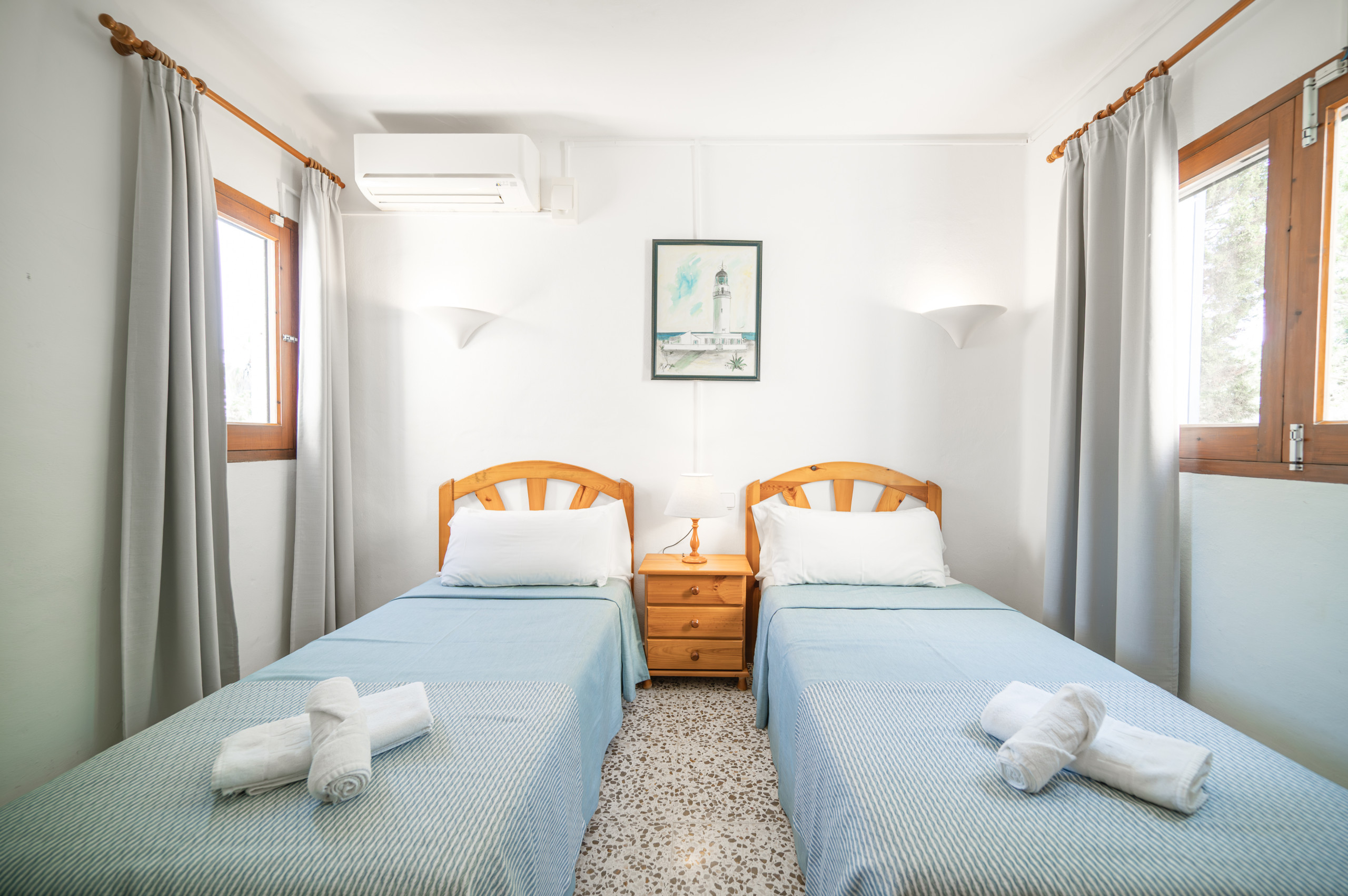 It consists of a bedroom with air conditioning and two single beds (90x190), living room with sofa bed and ceiling fan, Smart-Tv, Wi-Fi, open-plan kitchen, full bathroom and terrace.