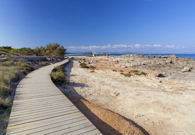 Alloggio al primo piano dell'edificio Can Granada situato in pieno oasi di tranquillità ai margini di Es Pujols, circondato da alberi e in armonia con la natura. A circa 100 m dal mare e a circa 400 m dal centro di Es Pujols.