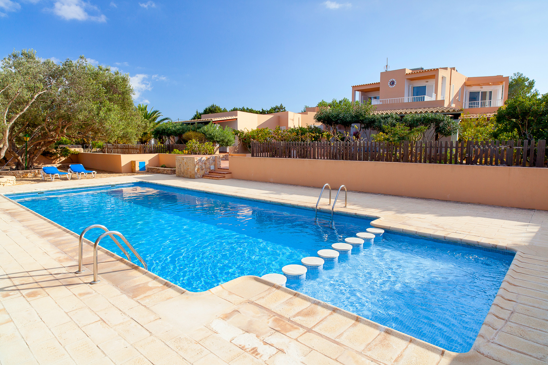 Nella zona comunitaria hanno piscina, doccia esterna, grill, giardini, parcheggio privato e un sentiero che porta alla spiaggia e alla passeggiata marittima di Es Pujols (circa 5 minuti a piedi). -
