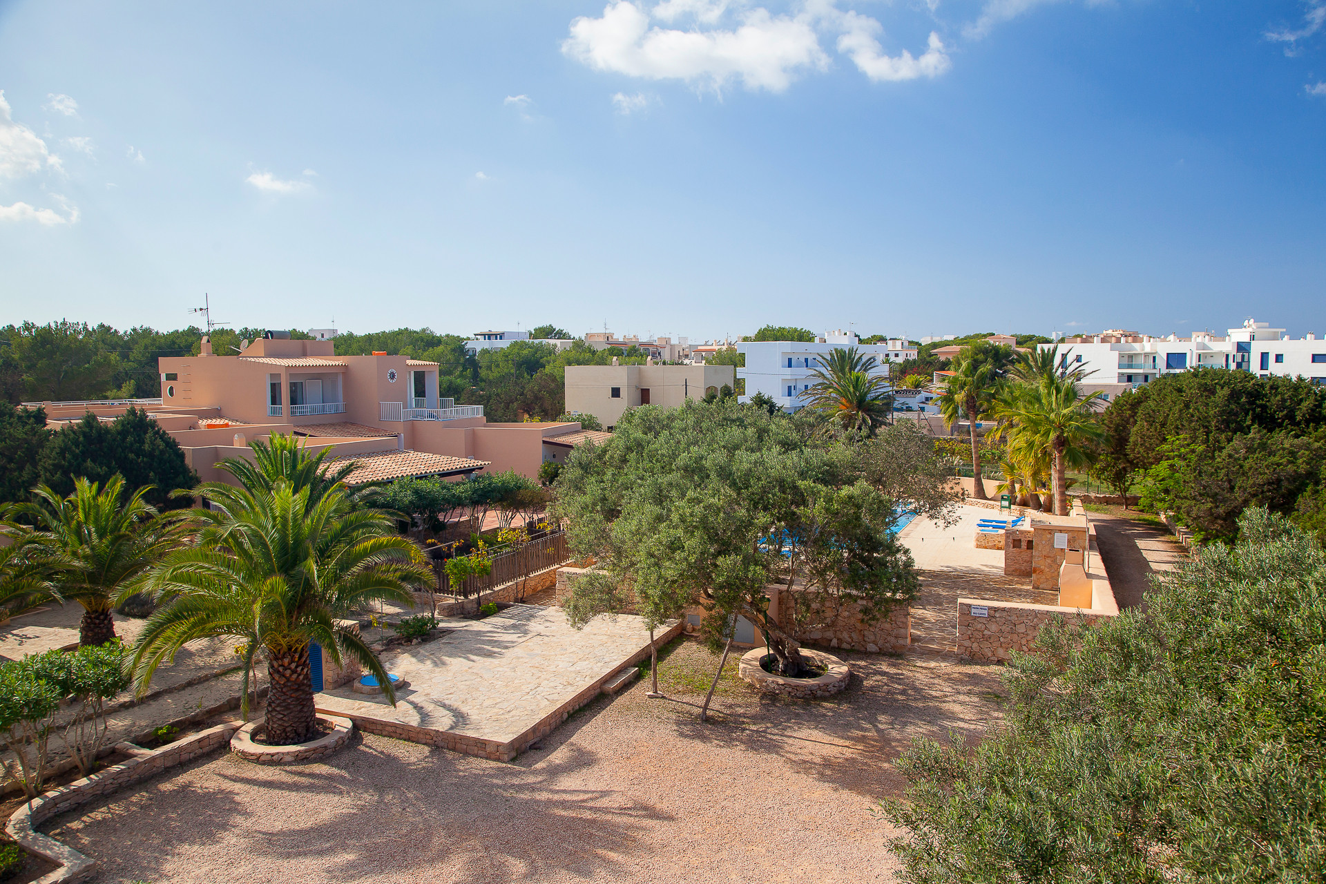 Bungalow al piano terra del complesso S'Olivera situato in pieno oasi di tranquillità ai margini di Es Pujols, circondato da alberi e in armonia con la natura. A circa 150m dal mare e a circa 400m dal centro di Es Pujols.