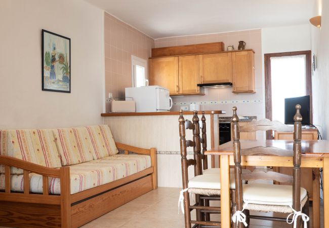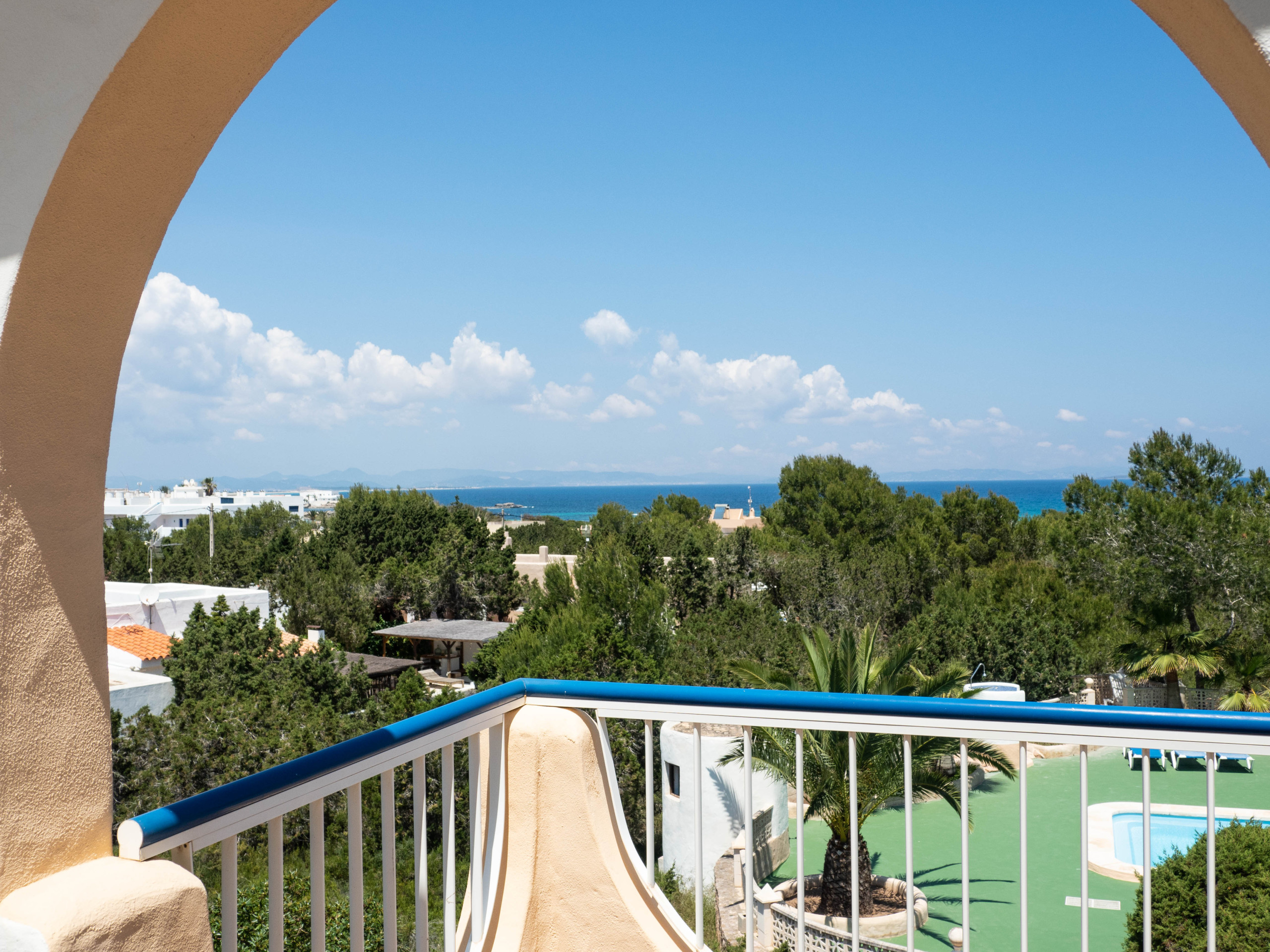 Appartamento situato al piano terra in una zona tranquilla a circa 450m da Es Pujols in direzione Punta Prima e a circa 200 metri dal mare.